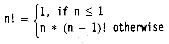 3! = 3 x 2 x 1 4! = 4 x 3 x 2 x 1 etc.Most math textbooks give the following equivalent recursive definition instead: